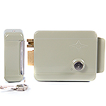 Особенностью подобного типа остается его максимально близкая конструкция к «классическому» варианту. Внутри корпуса запорного механизма имеется ключевой цилиндр и система рычагов, которые могут приводиться в действие небольшим электромагнитом. Эта конструкция позволяет открыть дверь снаружи ключом, а изнутри домофоном или кнопкой, расположенной на корпусе.