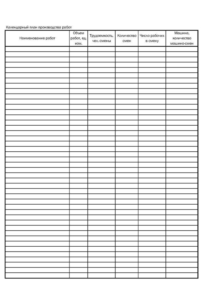 - МДС 12-81.2007 (Методические рекомендации в строительстве). Форма календарного плана выполнения работ определена в п. 6.3 указанного документа.