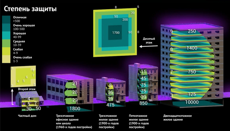 «Если первое попавшееся здание, в котором вы укрылись от взрыва, не очень надежно, а рядом есть более подходящее, стоит переместиться туда для защиты от радиоактивных осадков», — советует он.