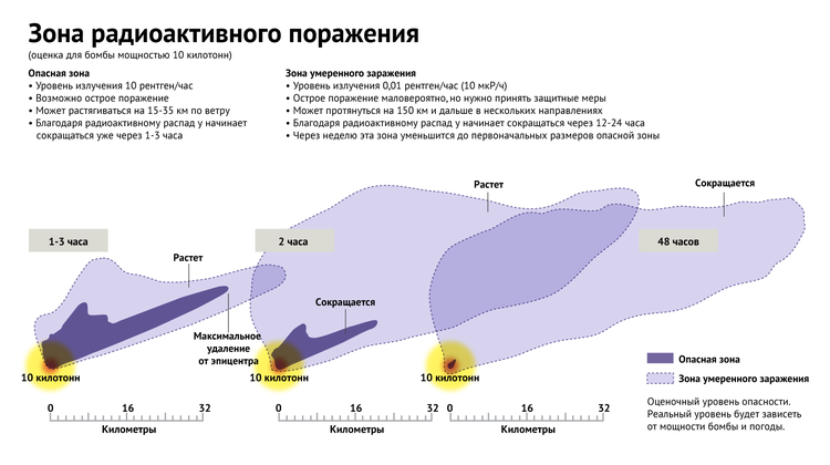 «Последствий от выпадения радиоактивных осадков можно избежать — если дело происходит в большом городе, то понимание, как следует себя вести, может спасти от смерти или лучевой болезни сотни тысяч человек», — отмечает эксперт.