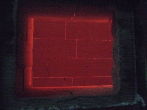 - 60-я минута. Температура 900°C. Прочность ниже первоначальной на 0,06 МПа, ее уровень составил 1,2 МПа. Поверхность окрашивается в светло-серые тона. Масса блоков – 93% от первоначальной. Количество трещин на нагреваемой поверхности возросло. Противоположная поверхность нагрелась до 22о С.