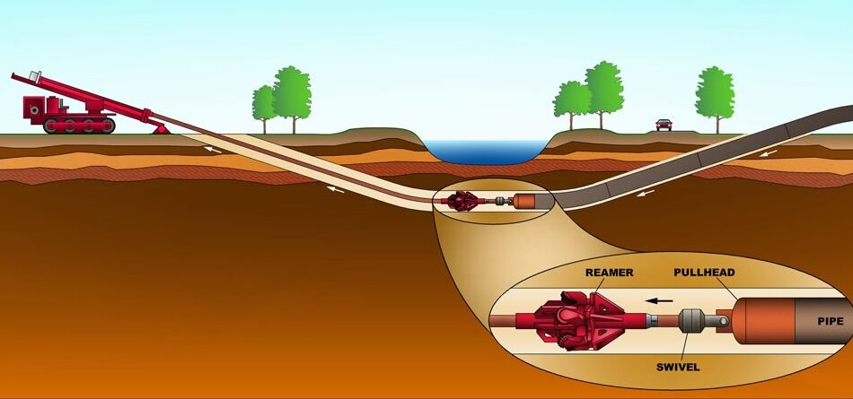 Горизонтальное бурение направленное — это метод, который позволяет прокладывать трубопроводы под землёй, не создавая откосов и не нарушая верхний слой почвы. Это достигается благодаря использованию специализированного оборудования, работающего по принципу направленного бурения. В процессе используются буровые установки, которые способны точно контролировать направление и наклон рабочего инструмента, что обеспечивает высокую точность при прокладке труб.