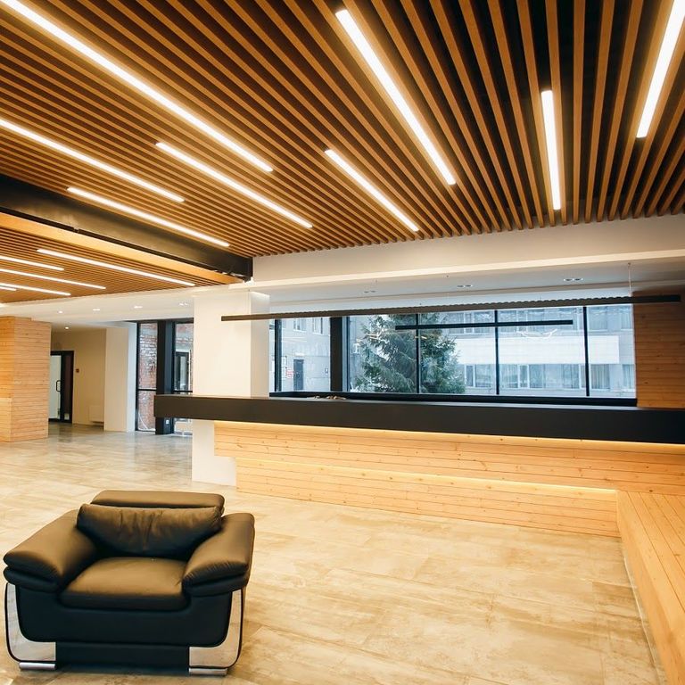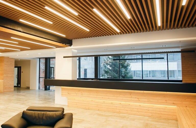 - Современный дизайн — реечные потолки придают помещению современный и стильный вид;