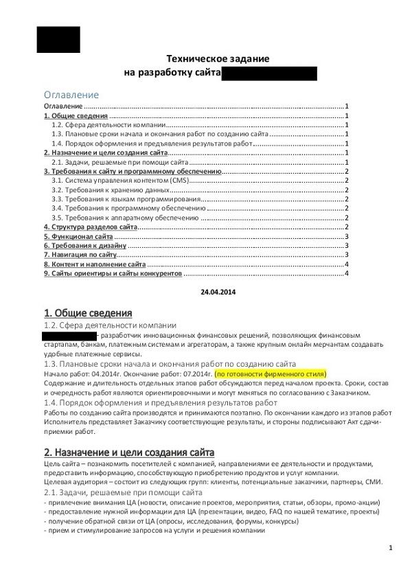 Первоначальный взнос – 30% от общей стоимости услуг, внесение которого не позднее даты начала разработки сайта;