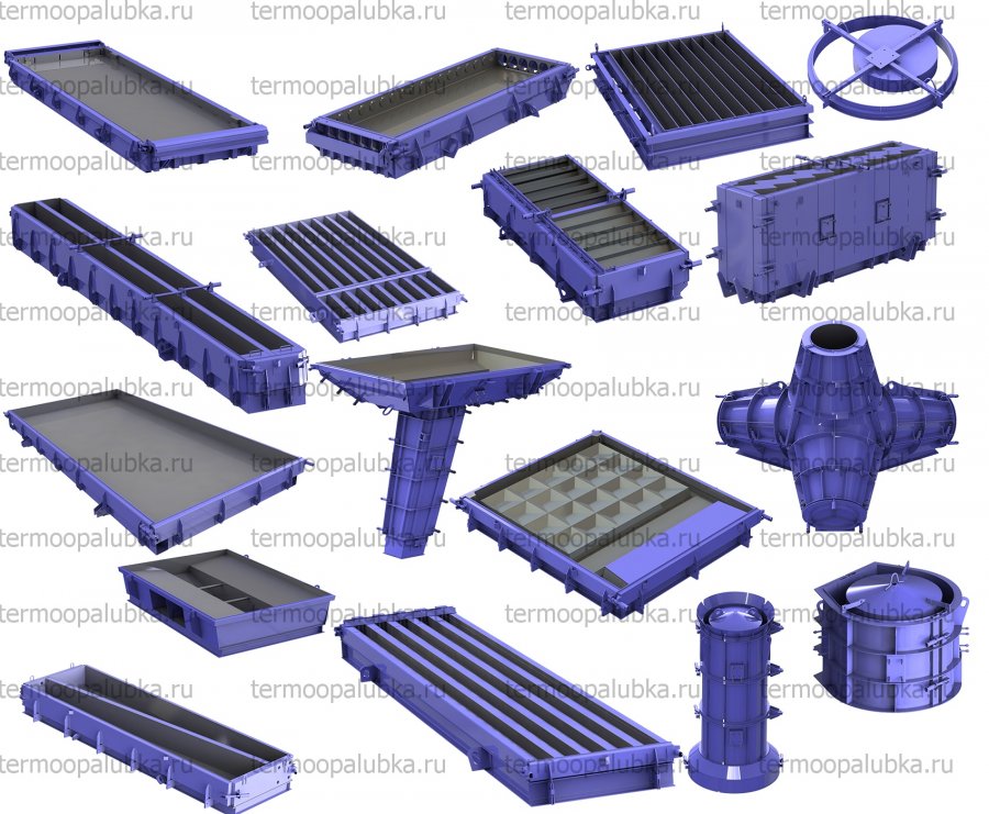 Существует несколько типов металлоформ для железобетонных изделий, каждый из которых предназначен для конкретного вида продукции: