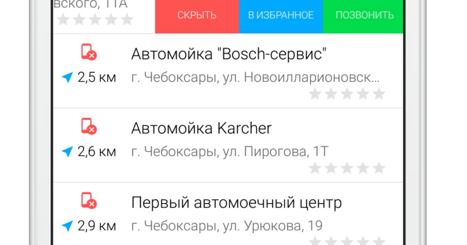 - Выберите ближайшую к вам автомойку из представленного списка.
