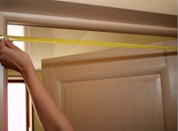 Размеры дверных проемов для подбора межкомнатных дверей снимаются при помощи рулетки. Высота замеряется по косякам, ширина — вверху и внизу, с отступом от пола и притолоки 0,3-0,5 м. Все полученные результаты фиксируются на схеме дверного проема, с одновременным выявлением несоответствий измерений проектным данным.