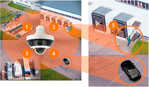 Главной отличительной особенностью панорамных камер является обеспечение всеобъемлющего обзора больших территорий в торговых залах, учебных заведениях, на уличных площадях, дорожных перекрестках и др. Благодаря отсутствию «слепых» секторов в зоне видеонаблюдения, панорамное устройство способно заменить несколько стандартных фиксированных камер или дорогостоящую PTZ модель. Кроме того, за счет отсутствия движущихся деталей, панорамные IP камеры не требуют регулярного технического обслуживания, более надежны, чем модели с поворотным механизмом, и могут легко и быстро устанавливаться путем накладного, врезного либо подвесного монтажа. Все панорамные устройства характеризуются высокой детализацией формируемого изображения, позволяющей идентифицировать лица людей и номерные знаки транспортных средств, контролировать кассовые и торговые операции, вести подсчет посетителей и т.д.
