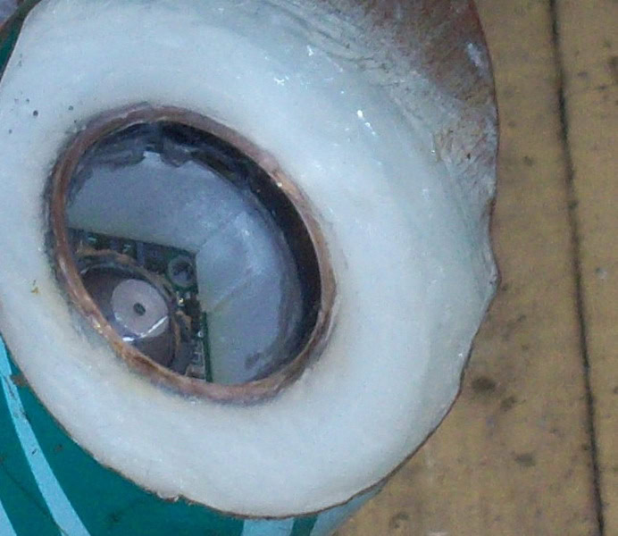 Если всё устраивает, то остается загерметизировать кожух. В качестве герметика можно использовать силиконовую замазку-клей для зеркал в тубе, хотя и дешевый строительный клей в тех же тубах будет работать не хуже. Не рекомендую использовать агрессивные герметики с запахом уксуса. Аккуратно обмазываем по краю круг со стеклом, край самого стекла и выходы кабеля из сальника.