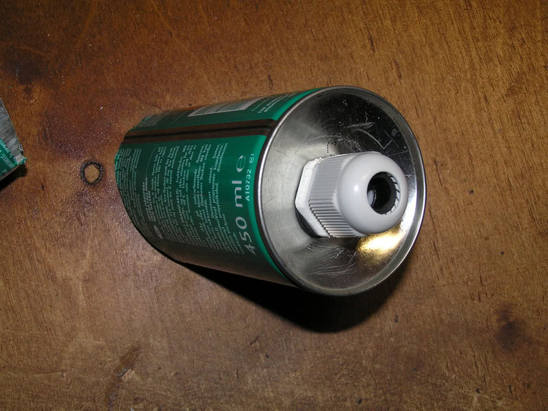 Разрезаем баллон под углом. В донышке делаем отверстие под электротехнический сальник PG11 посадочным диаметром 18 мм.
