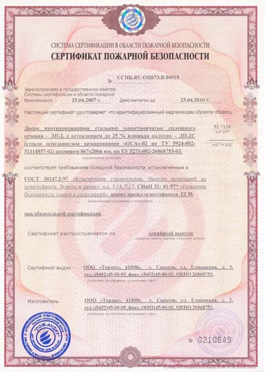 Иными словами, если производитель заявил о соблюдении ГОСТов — он обязан сертифицировать свою продукцию, в нашем случае — обязан сертифицировать дверь как противопожарную.
