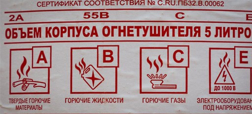 Итак, разобравшись с классами возгораний, давайте попытаемся найти указания на огнетушащую способность того либо иного огнетушителя непосредственно на баллоне. Да-да, там все написано.