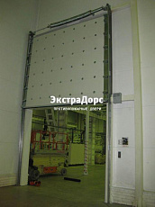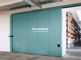 Поднятие и удержание ворот в открытом положении осуществляется приводом, оснащенным электромагнитной муфтой. При поступлении сигнала пожарной тревоги ворота закрываются.