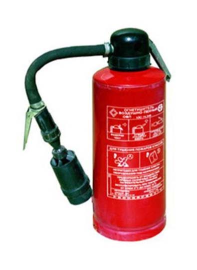 | Воздушно-пенный | В таком огнетушителе около 90% воздуха, остальные составляющие – вода и пенообразователь. Используется при температуре от +5 °C. Подходит для тушения твердых предметов и жидкостей. Не рекомендуется тушить электроустановки, так как пена является проводником тока |