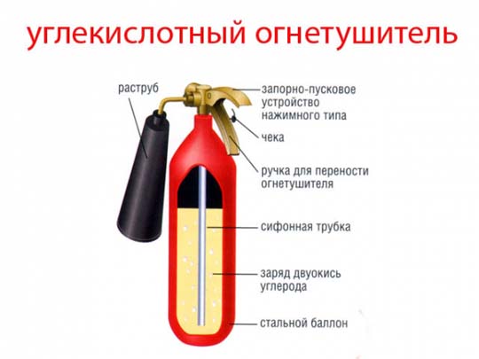 Все мы помним из уроков физики в школе, что кислород способствует горению. Так вот задача углекислотного газа и заключается в том, чтобы вытеснить кислород, прекратив пожар. Таким устройством можно гасить электропроводку, так как газ не проводит ток.