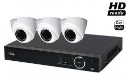 - Три цветных купольных видеокамеры высокого разрешения 720P (1280×720)